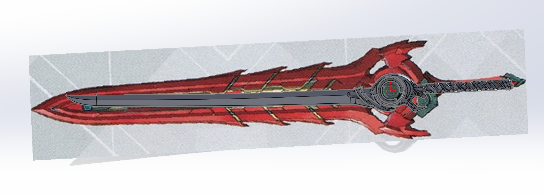 The sword has two parts. The actual sword, and the sheath which also looks like a sword. I used SolidWorks for modeling, and Adobe Illustrator for prepwork, concepting, and planning the execution of the build.