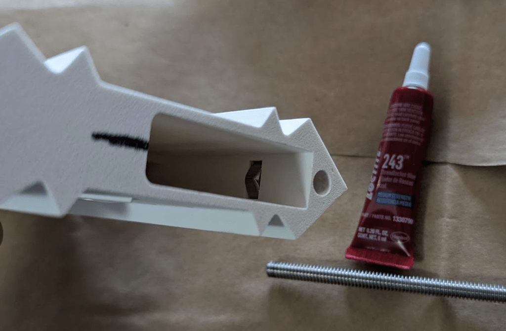 Turning back to the scabbard, construction began. I decided to use long threaded rods with embedded nuts in the scabbard to give tension between the pieces, pulling them all together.