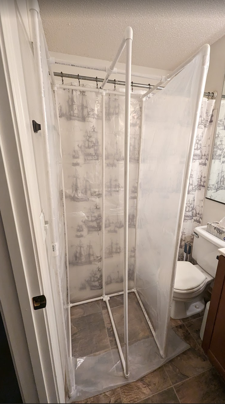 To finish, I whipped up a spray booth as affordably as possible in our spare bathroom and applied a clearcoat spray, to give the blade an appropriate shine and protect against any scuffs and dings.